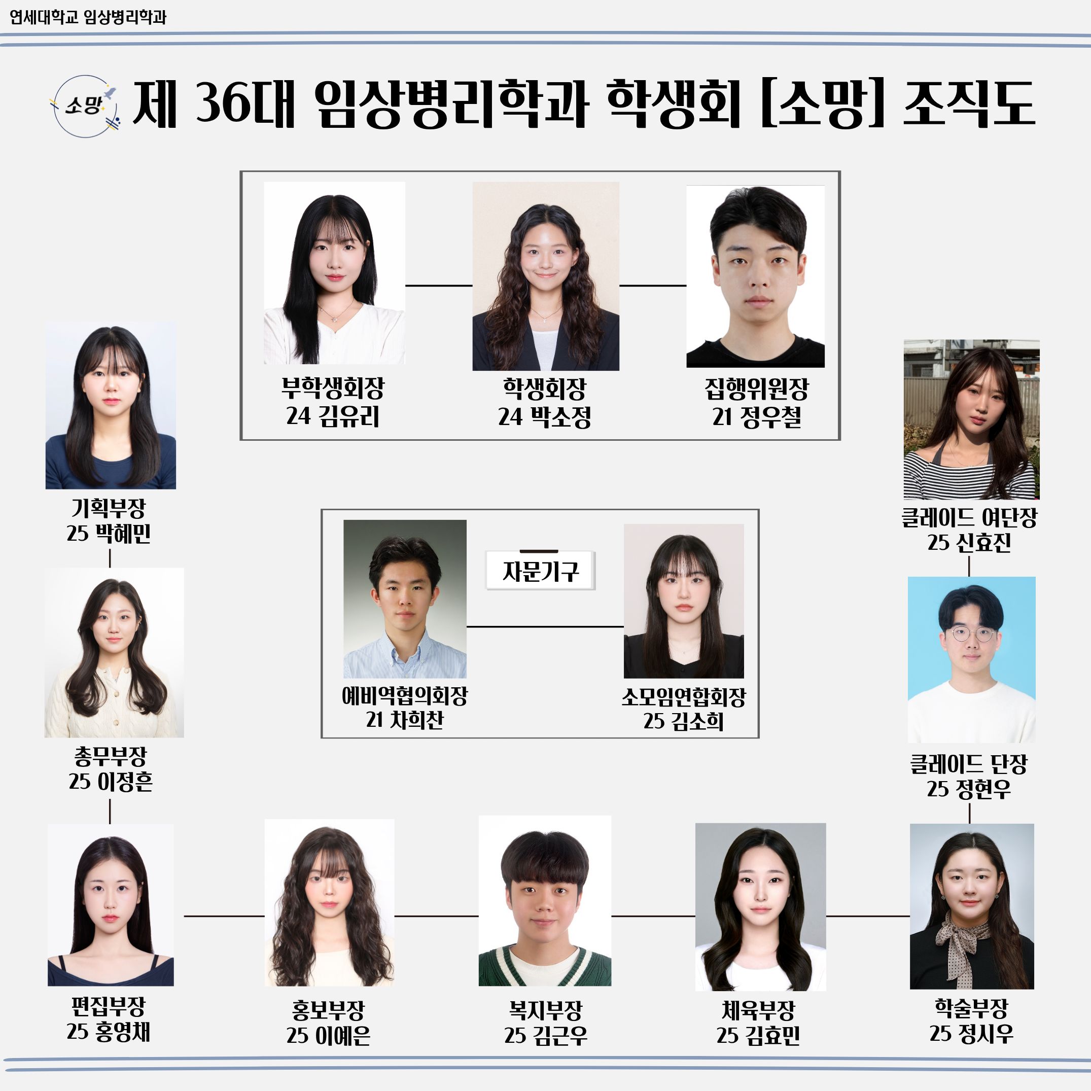 우리 학생회는 각종 학과 행사를 기획하고 준비할 뿐만 아니라 학우들에게 연세대학교 임상병리학과에 대한 자긍심을 지니게 하고, 학우들과 교수님 교직원 그리고 동문들간의 원활한 의사소통을 하게끔 도와주는 역할을 하고 있습니다.